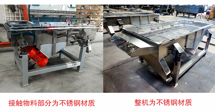直線振動篩有兩種選擇方式:①接觸物料部分為不銹鋼材質(zhì),其他部分為碳鋼材質(zhì),②整機為不銹鋼材質(zhì),具體選擇哪種不銹鋼直線振動篩,還需要根據(jù)物料性質(zhì)以及用戶的實際需求選用不同的材質(zhì),如果您的適用場景對衛(wèi)生要求高的話可以采用第二種方案。