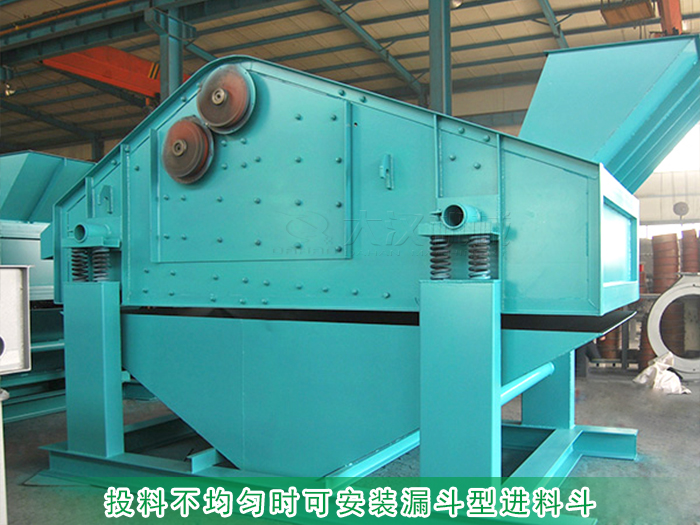 砂巖礦用振動篩一般篩分產(chǎn)量比較大,進(jìn)料時投料量也會很大,所以很容易造成篩面物料堆積,影響過網(wǎng)率,出現(xiàn)篩網(wǎng)堵塞的情況,所以在進(jìn)料時需要均勻進(jìn)料,不要一次性投入過多物料??稍谶M(jìn)料口上蓋上加裝一個漏斗型的進(jìn)料斗,使砂巖勻速進(jìn)料避免堆積。