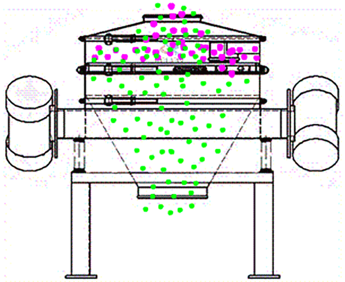 同樣是電機提供振動源,物料從進料口進入,在振動作用下,小顆粒穿過篩板到達出料口;篩機蓋使整個振動篩稱為一個密封環(huán)境,物料就不會受到污染或亂飛;彈簧則是在振動狀態(tài)下起到減震作用,如果沒有彈簧,振動篩是無法工作的。