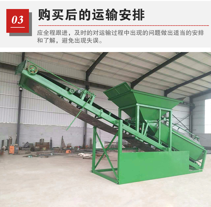 篩沙機在采購?fù)戤吅?,廠家會在設(shè)備完成后進(jìn)行運輸發(fā)貨,此時,用戶應(yīng)全程跟進(jìn),及時的對運輸過程中出現(xiàn)的問題做出適當(dāng)?shù)陌才藕土私?,避免廠家出現(xiàn)失誤,出現(xiàn)小配件漏發(fā)等問題。