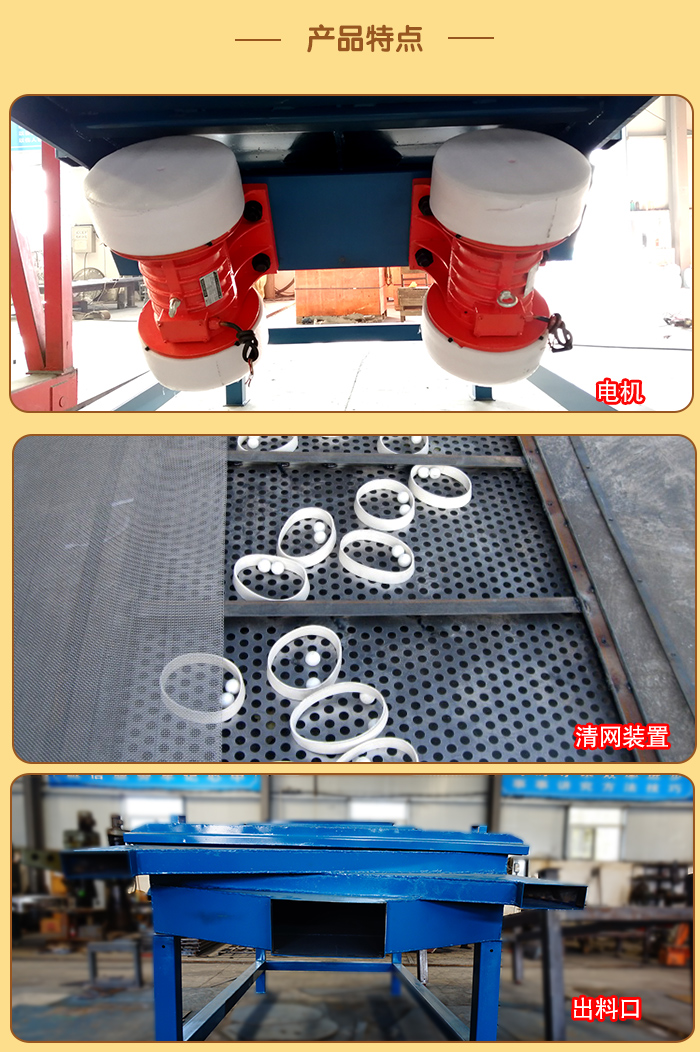 6、設(shè)備在停機(jī)時(shí)產(chǎn)生瞬間的共振區(qū),此時(shí)振幅和噪聲會(huì)明顯增大,屬正?,F(xiàn)象,設(shè)備在開(kāi)停機(jī)前,篩面上不得有存留物料,篩網(wǎng)需經(jīng)常檢查是否張緊、破損,如有破損要即時(shí)更換。